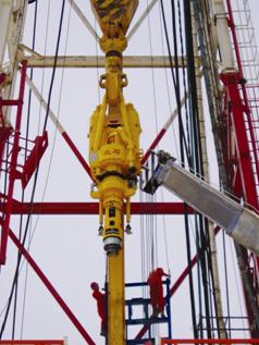 Top drive, shot for top drive oil drilling device, is an important leading technology in the oil drilling industry, dubbed one of the three technical fruits of modern oil drilling equipments. The device used to be only produced in advanced countries such as the US and Canada. In order to acquire top drive products of independent intellectual rights, BPM has started research on AC frequency conversion top drive oil drilling device since 2003 and succeeded in industrialization.