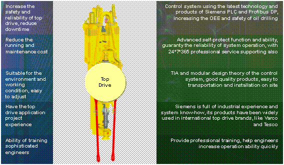 ‘The products adopted in BPM top drive electronic controlling system are all from Siemens, designed and produced by Siemens Factory Automation Engineering Co. (SFAE)’. Mr. Liu Liwei, Supervisor of oil drilling business of Engineering Department of SFAE, partner of Siemens in system integration says, ‘Top drive electronic controlling system fulfills intelligent communication between electric control room and driller’s console and among host control stations. It provides convenience for drill maintenance staff and digger centralized monitoring and has good visibility and readability. Meanwhile, it largely simplifies the system structure to enlarge the development room for follow-up functions. In terms of design, installation, running, maintenance and efficiency, it has shown great advantage and laid foundation for the integrated automation of the system.’