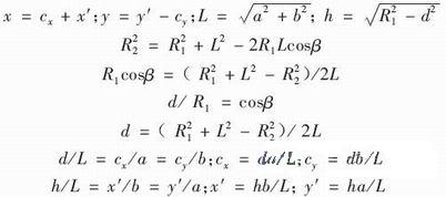 現(xiàn)以異排一帶二傳動(dòng)模型為例說明其計(jì)算過程,異排一帶二即在一根傳動(dòng)軸上用兩對齒輪分別帶動(dòng)兩根已知軸,如圖5所示。已知O軸、A軸的坐標(biāo)以及傳動(dòng)齒輪的齒數(shù)和模數(shù),B軸坐標(biāo)的計(jì)算過程如下