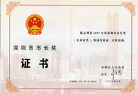 2008年6月27日上午,深圳市委、市政府在市民中心召開(kāi)2007年度全市科技創(chuàng)新獎(jiǎng)勵(lì)大會(huì),隆重表彰2007年度科技創(chuàng)新的獲得者。會(huì)議由市委常委、常務(wù)副市長(zhǎng)許勤主持,許勤代表市政府宣讀了《關(guān)于2007年度深圳市科技創(chuàng)新獎(jiǎng)勵(lì)的通報(bào)》。研祥智能科技股份有限公司陳志列董事長(zhǎng)榮獲本次市長(zhǎng)獎(jiǎng)(企業(yè)家類(lèi)),深圳市市長(zhǎng)許宗衡親手為陳志列頒發(fā)市長(zhǎng)獎(jiǎng)證書(shū)和獎(jiǎng)金。