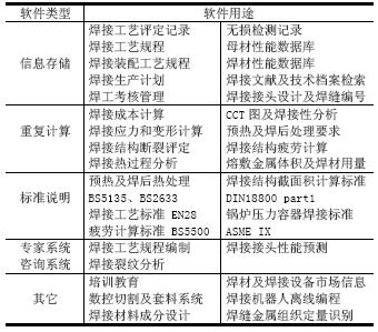 表1 焊接工程應(yīng)用軟件的分類和用途(IIW)