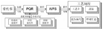 在鍋爐、壓力容器、石油管道、船舶、核電等重要金屬結(jié)構(gòu)的焊接生產(chǎn)制造中,焊接工藝必須根據(jù)相應(yīng)的標(biāo)準(zhǔn)或規(guī)范進(jìn)行嚴(yán)格的工藝評(píng)定,形成焊接工藝評(píng)定報(bào)告PQR,并在此基礎(chǔ)上生成焊接工藝指導(dǎo)書WPS,然后依據(jù)相應(yīng)的標(biāo)準(zhǔn)制定焊接工藝規(guī)程,以保證產(chǎn)品的焊接質(zhì)量和性能。如果在制定焊接工藝規(guī)程之前,沒有進(jìn)行過焊接工藝評(píng)定,工藝人員就要根據(jù)相關(guān)標(biāo)準(zhǔn)和經(jīng)驗(yàn)提出焊接工藝評(píng)定委托書PPQR。各文檔之間的關(guān)系如圖1 所示??梢?,制定一套焊接工藝規(guī)程文件要求嚴(yán)格,且過程繁瑣,因此開發(fā)能夠在對(duì)PQR 和WPS 進(jìn)行有效管理的基礎(chǔ)上編制、檢索焊接工藝規(guī)程的應(yīng)用軟件系統(tǒng)十分必要,它可以有效地利用現(xiàn)有PQR 和WPS,避免重復(fù)