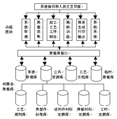 清華大學(xué)與太原重機(jī)集團(tuán)合作開發(fā)的針對(duì)重型機(jī)械焊接結(jié)構(gòu)的焊接工藝規(guī)劃WCAPP 系統(tǒng),在制定焊接零部件從下料開始到最后裝配焊接形成產(chǎn)品的工藝工序的同時(shí),完成工時(shí)、材料定額的計(jì)算和匯總,最終形成一個(gè)可以指導(dǎo)整個(gè)焊接結(jié)構(gòu)生產(chǎn)全過程的包含工時(shí)及材料定額的技術(shù)文檔,從而使生產(chǎn)準(zhǔn)備工作更加科學(xué),有效地提高了生產(chǎn)準(zhǔn)備和管理效率。其總體結(jié)構(gòu)如圖3 所示。