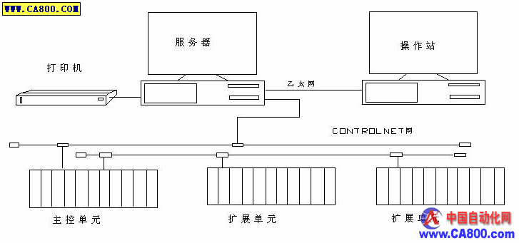 DCS控制系統(tǒng)(編程軟件為ControlBuilder和DisplayBuilder)。本系統(tǒng)配置了操作站、服務(wù)器、控制站三個部分。其結(jié)構(gòu)如圖1: