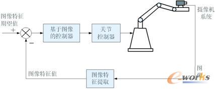 前者采用機(jī)器人關(guān)節(jié)反饋內(nèi)環(huán)穩(wěn)定機(jī)械臂,由圖像處理模塊計算出攝像機(jī)應(yīng)具有的速度或位置增量,反饋至機(jī)器人關(guān)節(jié)控制器;后者則由圖像處理模塊直接計算機(jī)器人手臂各關(guān)節(jié)運(yùn)動的控制量。