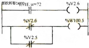 梯圖程序圖見附圖,其中,V2.5為一按鈕組成的雙穩(wěn)態(tài)輸出。