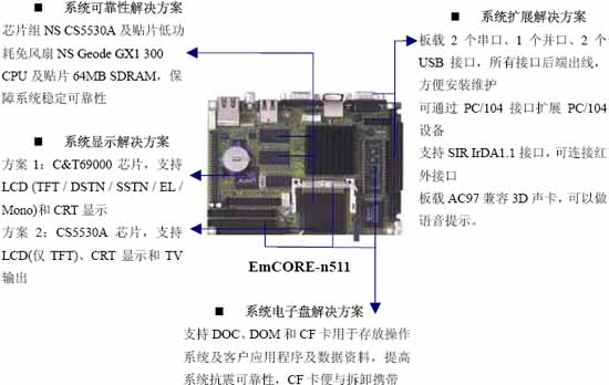車載PC典型方案——ARBOR 3.5寸NS Geode GX1 300微型主板(EmCORE-n511系列)