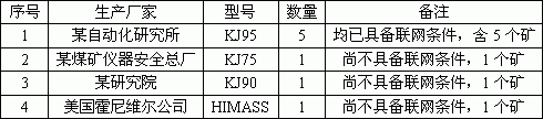 某礦業(yè)(集團(tuán))公司共有八個(gè)煤礦需要進(jìn)行聯(lián)網(wǎng)監(jiān)控,每個(gè)礦都有一套獨(dú)立的監(jiān)測(cè)系統(tǒng)在使用,但不是同一個(gè)廠家的產(chǎn)品。具體如下:
