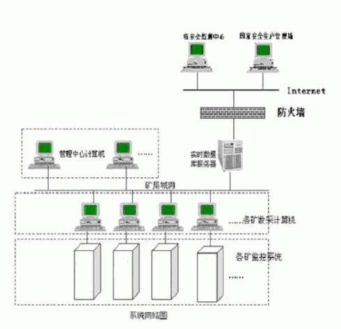 某礦業(yè)(集團(tuán))公司安全生產(chǎn)監(jiān)測(cè)系統(tǒng)是在生產(chǎn)、安全及管理方面的一個(gè)實(shí)時(shí)監(jiān)控系統(tǒng),對(duì)于煤礦的生產(chǎn)運(yùn)行狀況、安全水平、災(zāi)害預(yù)測(cè)預(yù)報(bào)具有重要的作用。為了加強(qiáng)集團(tuán)公司對(duì)下轄各礦的安全生產(chǎn)管理,利用現(xiàn)有網(wǎng)絡(luò)資源掌握各個(gè)下屬煤礦的安全和生產(chǎn)情況,某礦業(yè)(集團(tuán))公司建立了一套安全生產(chǎn)監(jiān)測(cè)信息系統(tǒng),將各個(gè)下屬煤礦的實(shí)時(shí)監(jiān)測(cè)數(shù)據(jù)集成在公司調(diào)度室,形成公司一級(jí)的安全生產(chǎn)監(jiān)控網(wǎng)絡(luò),各個(gè)下屬煤礦又把所屬的每個(gè)礦井的生產(chǎn)和安全數(shù)據(jù)集成在礦調(diào)度室,組建礦一級(jí)監(jiān)控子網(wǎng),使公司從上到下各個(gè)部門以及領(lǐng)導(dǎo)都可以隨時(shí)掌握各個(gè)煤礦和礦井的生產(chǎn)狀況和安全狀況,并可以進(jìn)行綜合性動(dòng)態(tài)分析,為領(lǐng)導(dǎo)決策提供依據(jù),實(shí)現(xiàn)資源共享。