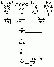 通過對冶煉工藝的分析:電爐在煉鋼過程的不同階段對除塵風量的大小有明顯的不同,以吹氧冶煉為最大,加料除塵為最低。鑒于電爐除塵系統(tǒng)中除塵風機的運行方式和設(shè)備特點,對除塵風機的控制制定如下方案。