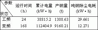 (1) 除塵設(shè)備功耗隨電爐煉鋼生產(chǎn)工藝變負荷運行,提高了系統(tǒng)效率;實現(xiàn)了除塵系統(tǒng)的最佳工況運行。取得顯著的節(jié)能效果。