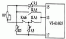 變頻器端子13為主速指令控制端,對(duì)應(yīng)10V電壓輸出的頻率是基本頻率,即50Hz。根據(jù)工藝要求,電動(dòng)機(jī)的調(diào)速范圍是5.14-576r/min。若仍舊采用原調(diào)整控制開關(guān)進(jìn)行控制,其電阻調(diào)整范圍是7512-200k12。為配合這個(gè)調(diào)速開關(guān)的設(shè)計(jì),調(diào)速電阻網(wǎng)絡(luò)如圖2所示。其中,R1、R3、R5均為3.3kΩ可調(diào)電阻。當(dāng)RP在75ll-200k12變化時(shí),對(duì)應(yīng)端子13的輸出電壓是6-0.054V。根據(jù)電路原理分析,當(dāng)R3=1.05kΩ時(shí),可以得到一組計(jì)算參數(shù):R1=985Ω,1.05kΩ,R5=2.26kΩ。