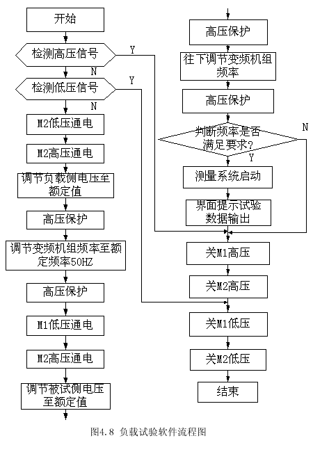 負載試驗必須保證變頻機組的頻率在規(guī)定范圍8~50Hz內變化,其對應的軟件流程圖如圖4.8所示: