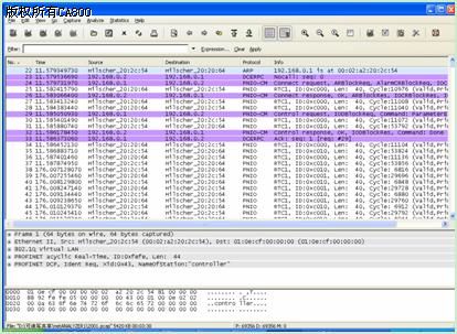 通過上述操作,成功抓取PROFINET報(bào)文共計(jì)5124KB,利用wireshark軟件打開所抓取的報(bào)文如圖5所示