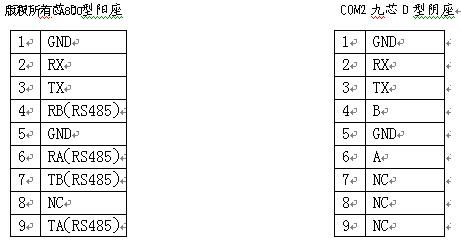 POP-D型文本提供兩個九芯D型端口COM1、COM2。其中COM1支持RS232/RS485/RS422物理連接,COM1端口同時也是工程畫面文件的PC下載端口;COM2支持RS232/RS485物理連接。兩個串行端口的定義如下:
