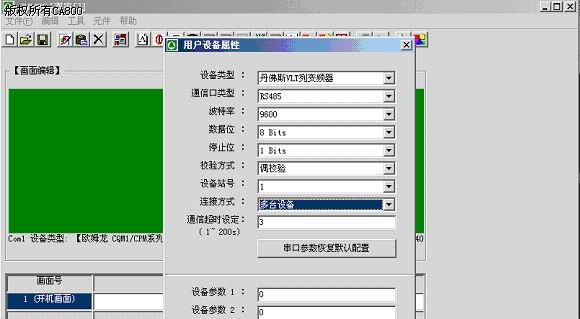 在上一個畫面中點擊“串口2_設置”項,彈出如下用戶設備屬性子畫面: