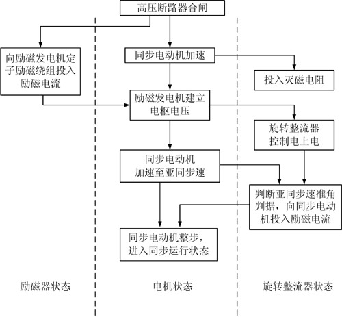 無(wú)刷同步電動(dòng)機(jī)的工頻起動(dòng)投勵(lì)過(guò)程如圖4所示: