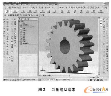對象的屬性與方法是通過API函數(shù)實(shí)現(xiàn),而API函數(shù)的調(diào)用是要與SolidWorks連接好后,在其連接函數(shù)中完成。此時(shí),就可以進(jìn)行零部件圖的建立,選擇操作(如基準(zhǔn)、對象的選擇);用InsertSketch()函數(shù)插人草圖,繪圖函數(shù)繪制出齒輪的齒形輪廓;接著調(diào)用PartDoc對象中的特征函數(shù)FeatureExtusion()(拉伸)、FeatureRevolve()(旋轉(zhuǎn))、FeatureScan()(掃描)等生成需要的模型。