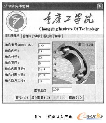 這樣就完成了齒輪插件程序的編譯與導(dǎo)人。齒輪設(shè)計(jì)界面如圖1,齒輪程序運(yùn)行結(jié)果如圖2所示,種承份助界面結(jié)果如圖3所示。