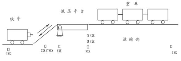 具體描述:由于系統(tǒng)采用自動(dòng)控制,所以鐵牛和重車(chē)的運(yùn)行狀態(tài)和位置需要識(shí)別,回槽限位開(kāi)關(guān)(7XK)、鐵牛的位置開(kāi)關(guān)(8XK)、重車(chē)的到位置開(kāi)關(guān)(9XK),限位開(kāi)關(guān)的功能如下: