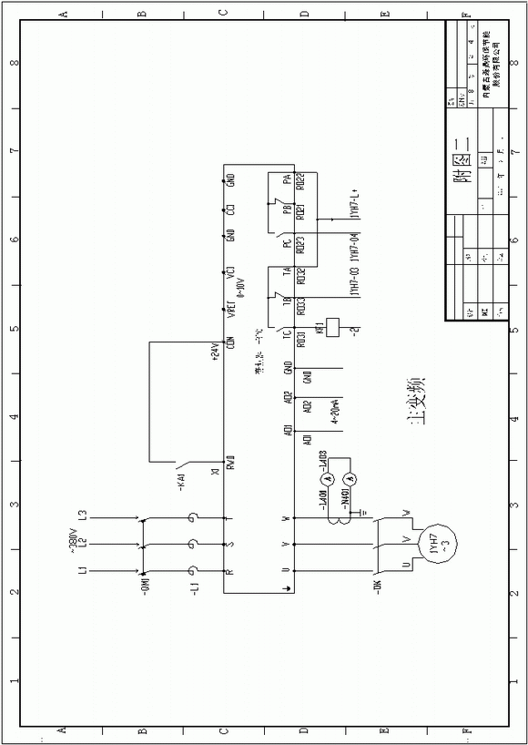 現(xiàn)場不具備電機(jī)調(diào)諧運(yùn)行(接手無法打開),控制方式采用V/F控制,電機(jī)參數(shù)F1.00-1.08按電機(jī)實(shí)際參數(shù)設(shè)置。