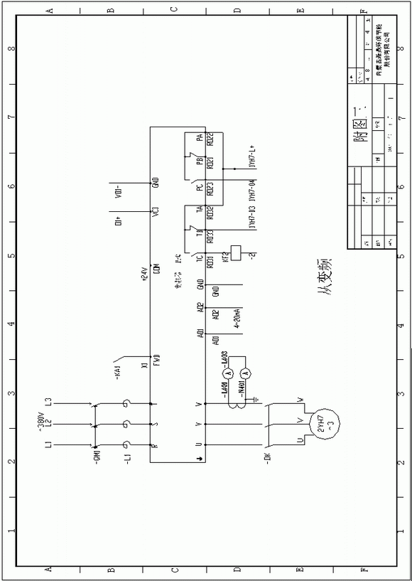 F0.02=4 V/F控制 F0.03=5 模擬設(shè)定,由PLC給出