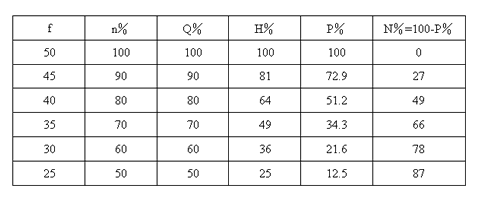 ![]() 當(dāng)風(fēng)機轉(zhuǎn)速下降時,電動機的功率迅速降低,例風(fēng)量下降到80%,轉(zhuǎn)速亦下降到80%時,則軸功率下降到額定的51%,若風(fēng)量下降到50%,軸功率將下降到額定的13%,其節(jié)電潛力非常大,并有下述曲線、陰影部分表示采用變頻器調(diào)速方式的節(jié)電效果,其節(jié)電可達30-40%效果十分明顯。對不同使用頻率時的節(jié)電率N%可查表: