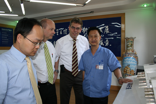 7月23日,蘇州西門子電器有限公司總經(jīng)理孟方澤、商務(wù)經(jīng)理李康田、全球采購部經(jīng)理王俊一行3人來公司參觀考察。