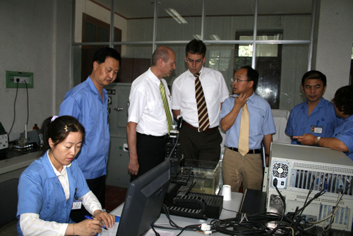 董事長楊林、總經(jīng)理倪筱仁、總工程師王秀華在三樓中會議室會見了西門子客人,并陪同參觀了產(chǎn)品展室、工裝、裝配、金屬件、塑料件分廠和理化室、試驗室。雙方就相互關(guān)心的問題深入交換了意見。