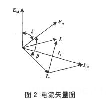 (1)差動保護(hù)的動作電流與制動電流的比值為了分析問題簡單,把雙端以上的變壓器都等效為雙端系統(tǒng),并以雙端系統(tǒng)為例,分析故障時差動保護(hù)中動作電流和制動電流的比值關(guān)系。假設(shè)EM為送電端,EN為受電端,發(fā)生內(nèi)部故障時,兩端的系統(tǒng)阻抗角基本一致。圖1為等效的雙端系統(tǒng),圖2為發(fā)生區(qū)內(nèi)嚴(yán)重故障時兩側(cè)電流的矢量圖,其中δ為兩側(cè)電源之間的夾角,β為等效的系統(tǒng)阻抗角。