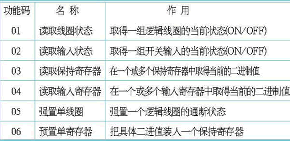 Modbus的Slave端是根據(jù)Master端發(fā)送過來的功能碼進(jìn)行相應(yīng)的動(dòng)作的。表3是Modbus RTU協(xié)議常用的功能碼,使用它們即可實(shí)現(xiàn)對(duì)Slave端的數(shù)字量和模擬量進(jìn)行讀寫操作。