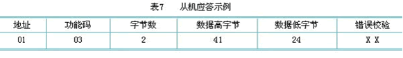 表7給出了以協(xié)議從機(jī)應(yīng)答讀取整數(shù)數(shù)據(jù)示例。