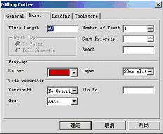 直徑20mm的立銑刀,可以在刀具庫中直接選擇名稱為: 20mm Slot Drill - 2 flute - IC250的銑刀 注意刀具的刃長。選中該刀具后,在瀏覽器中雙擊刀具圖標(biāo),在彈出的刀具對話框中的第二頁可以更改刀具刃長的參數(shù)(見下圖):