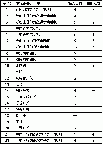 2 輸入/輸出的選擇 PLC是一種工業(yè)控制系統(tǒng),它的控制對象是工業(yè)生產(chǎn)設(shè)備或工業(yè)生產(chǎn)過程,工作環(huán)境是工業(yè)生產(chǎn)現(xiàn)場。它與工業(yè)生產(chǎn)過程的聯(lián)系是通過I/O接口模塊來實現(xiàn)的。 通過I/O接口模塊可以檢測被控生產(chǎn)過程的各種參數(shù),并以這些現(xiàn)場數(shù)據(jù)作為控制信息對被控對象進行控制。同時通過I/O接口模塊將控制器的處理結(jié)果送給被控設(shè)備或工業(yè)生產(chǎn)過程,從而驅(qū)動各種執(zhí)行機構(gòu)來實現(xiàn)控制。PLC從現(xiàn)場收集的信息及輸出給外部設(shè)備的控制信號都需經(jīng)過一定距離,為了確保這些信息的正確無誤,PLC的I/O接口模塊都具有較好的抗干擾能力。根據(jù)實際需要,一般情況下,PLC都有許多I/O接口模塊,包括開關(guān)量輸入模塊、開關(guān)量輸出模塊、模擬量輸入模塊、模擬量輸出模塊以及其它一些特殊模塊,使用時應(yīng)根據(jù)它們的特點進行選擇。 2.1 確定I/O點數(shù) 根據(jù)控制系統(tǒng)的要求確定所需要的I/O點數(shù)時,應(yīng)再增加10%~20%的備用量,以便隨時增加控制功能。對于一個控制對象,由于采用的控制方法不同或編程水平不同,I/O點數(shù)也應(yīng)有所不同。 表2列出了典型傳動設(shè)備及常用電氣元件所需的開關(guān)量的I/O點數(shù)。 表2 典型傳動設(shè)備及常用電氣元件所需的開關(guān)量的I/O點數(shù)