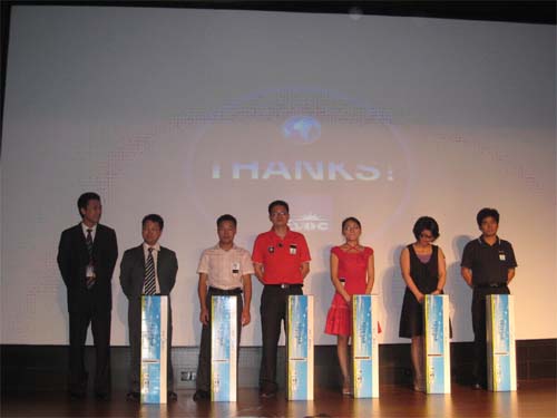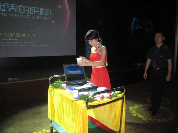在五彩的燈光效果和動感的音樂旋律烘托下,由研祥員工組建的產(chǎn)品模特隊著實讓人眼前一亮。盛裝的產(chǎn)品Model一邊展示著手中的產(chǎn)品一邊款款走向前方講臺,每一款產(chǎn)品都是經(jīng)過精心挑選具有代表性的年度新品,因為模特的展示,這些平時讓人倍感生硬的高科技產(chǎn)品似乎突然間變得活潑生動了許多。頃刻間,閃光燈此起彼伏照亮了整個會議廳,大家競相拍照,氣氛格外熱烈。除了產(chǎn)品秀環(huán)節(jié),研祥“極地酷霸系列“堅固筆記本低溫、淋水試驗和現(xiàn)場跌落演示也給與會者留下了深刻的印象。放置在冰塊上的堅固筆記本在干冰氣體的包圍下若隱若現(xiàn),筆記本通電運行后,演示人員將一杯水從其上方倒下,水順著屏幕積聚到鍵盤上,筆記本仍然能夠正常運行。即使是從