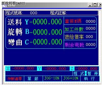 操作者看到的程序是非常簡(jiǎn)單的程序。干涉處理和程序運(yùn)算都是操作者看不到的也是無(wú)法修改的。整個(gè)程序的架構(gòu)分主程序,前置程序,后置程序以及子程序等,各子程序可以用來(lái)處理不同的送料以及彎管方式,調(diào)用也非常方便。