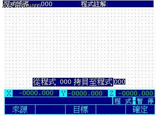 根據(jù)不同用戶的實(shí)際要求,需要產(chǎn)品多樣性,彎管角度參數(shù)靈活可變的特點(diǎn),三維彎管機(jī)系統(tǒng)在設(shè)計(jì)時(shí)要求數(shù)控系統(tǒng)擁有強(qiáng)大程序檔案處理功能。在系統(tǒng)設(shè)計(jì)中,采用了中達(dá)電通數(shù)控系統(tǒng)的填充格式的程序設(shè)計(jì),該方案可以讓單個(gè)工件的彎數(shù)不受限制(只受程序容量的限制,可以說(shuō)單個(gè)工件可以彎“無(wú)數(shù)”個(gè)彎),而且不同的工件編寫(xiě)好的程序(輸入好的數(shù)據(jù))可以保存在不同的程序號(hào)中,一共可以保存900個(gè)程序,即可以儲(chǔ)存900個(gè)不同的工件程序。各程序號(hào)之間可以來(lái)回拷貝如圖8所示