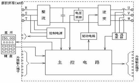 變頻器是利用電力半導(dǎo)體器件的通斷作用將工頻電源變換為另一頻率的電能控制裝置。低壓變頻器主要采用交—直—交方式,先把工頻交流電源通過整流器轉(zhuǎn)換成直流電源,然后再把直流電源轉(zhuǎn)換成頻率、電壓均可控制的交流電源以供給電動機(jī)。變頻器的電路一般由整流、中間直流環(huán)節(jié)、逆變和控制4個部分組成。整流部分為三相橋式不可控整流器,逆變部分為IGBT三相橋式逆變器,且輸出為PWM波形,中間直流環(huán)節(jié)為濾波、直流儲能和緩沖無功功率。通過變頻器可以自由調(diào)節(jié)電機(jī)的速度。如圖1為變頻器內(nèi)的控制電路框圖。