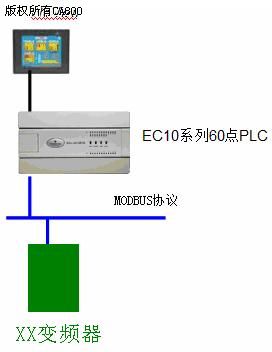 變頻器采用某品牌的通用型變頻器,PLC通過MODBUS協(xié)議進(jìn)行通訊。
