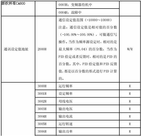按照某品牌變頻器的通訊說明,通用的變頻器的功能碼如下: