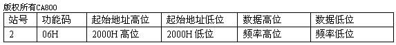 改寫通訊變頻器的頻率的協(xié)議幀如下: