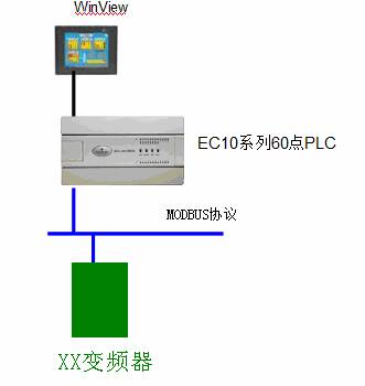 變頻器采用某品牌的通用型變頻器,PLC通過(guò)MODBUS協(xié)議進(jìn)行通訊。