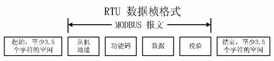 在RTU模式中,幀總是以3.5個(gè)字節(jié)的傳輸時(shí)間靜默,作為開始。RTU的數(shù)據(jù)格式為: