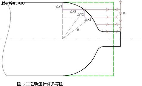第一段圓弧在X方向長(zhǎng)度ΔX1=sqrt(R2-(R-K)2)