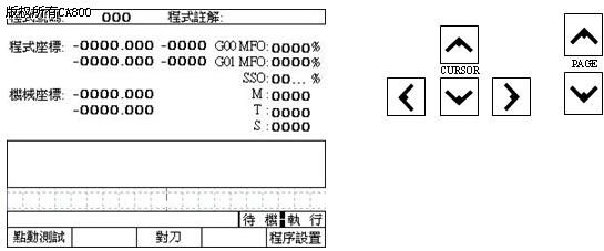 手動(dòng)畫面下按上下翻頁(yè)鍵可以調(diào)整G01和手動(dòng)進(jìn)給倍率。