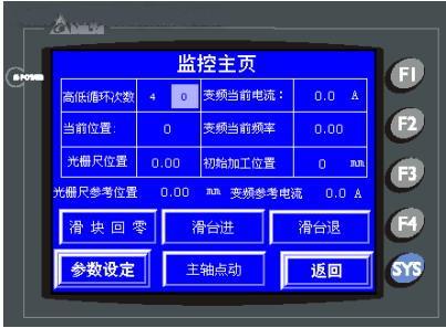 系統(tǒng)要求珩磨和“凸點(diǎn)”檢測同時進(jìn)行,珩磨的厚度主要由珩磨油石、油壓控制檢測的光柵和PLC共同實(shí)現(xiàn),由于臺達(dá)32EH00M伺服控制專用PLC系列能夠接收2信道差動輸入,所以無需其它轉(zhuǎn)換電路,光柵尺信號可直接接入PLC,且同時將伺服驅(qū)動的分頻輸出直接輸入PLC,以便實(shí)時檢測機(jī)臺的絕對位置。在實(shí)際的珩磨過程中,因工件內(nèi)圓的“凸點(diǎn)”存在,由此形成珩磨變頻馬達(dá)電流瞬間的一個峰值,利用系統(tǒng)核心PLC記憶該電流峰值形成時的位置,然后控制伺服小車在此“凸點(diǎn)”珩磨擺動的次數(shù),達(dá)到預(yù)期的珩磨精度,同時也可以根據(jù)光柵尺內(nèi)圓半徑的檢測,自動研磨至設(shè)定的厚度。所以該系統(tǒng)采用變頻負(fù)載/電流線性對應(yīng)關(guān)系,完成了對加工工件內(nèi)圓的“凸點(diǎn)”檢測。臺達(dá)V系列變頻為全矢量高性能的驅(qū)動,能夠快速精確反應(yīng)出負(fù)載電流的變化,而臺達(dá)PLC采用通訊方式快速采樣變頻器電流為該系統(tǒng)的關(guān)鍵所在。
