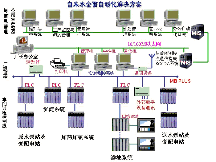 提供從檢測(cè)儀表、控制設(shè)備(計(jì)算機(jī)和可編程控制器)、傳動(dòng)設(shè)備(變頻器和軟啟動(dòng)器),到系統(tǒng)網(wǎng)絡(luò)通訊設(shè)備,構(gòu)建凈水以及污水處理的一攬子解決方案。自控系統(tǒng)是水處理行業(yè)的神經(jīng)系統(tǒng),各種設(shè)備在整個(gè)系統(tǒng)的統(tǒng)一指揮下協(xié)調(diào)運(yùn)作,該系統(tǒng)的質(zhì)量直接影響到生產(chǎn)目標(biāo)的實(shí)現(xiàn)。創(chuàng)聯(lián)信公司面向水處理工藝流程,精心考慮儀表選型,采用現(xiàn)代控制算法,強(qiáng)調(diào)可靠實(shí)用,以簡(jiǎn)化生產(chǎn)管理,提高可靠性和MTBF(平均無(wú)故障工作時(shí)間)為指導(dǎo)思想,從而使用于水處理的龐大投資迅速得到理想回報(bào)。