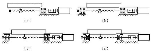 改造時(shí)各軸滾珠絲杠的直徑一般都是與原T型絲杠直徑相近,對(duì)有特殊要求的機(jī)床還應(yīng)根據(jù)桿系的穩(wěn)定性計(jì)算其臨界轉(zhuǎn)速,最終確定滾珠絲杠的直徑。絲杠導(dǎo)程在滿足機(jī)床改造后性能的前提下越小,對(duì)機(jī)床的傳動(dòng)精度越有利。機(jī)床的傳動(dòng)精度在保證機(jī)床剛性的情況下,與絲杠副本身的精度和軸承布置形式有很大的關(guān)系,一般在普通機(jī)床改造中絲杠副選P4級(jí)即可滿足要求,特殊精密機(jī)床選P3級(jí)甚至更高。絲杠副軸承常見(jiàn)的布置形式根據(jù)不同的需要可以分為以下幾種,如圖1。