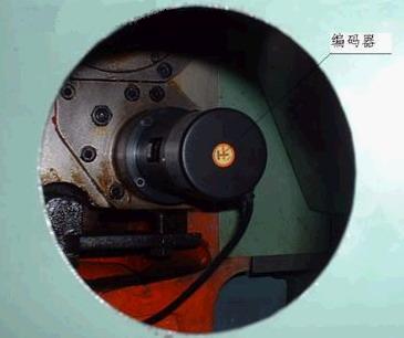 機(jī)床能否進(jìn)行螺紋加工是主軸部分?jǐn)?shù)控化改造的另一重要部分,傳統(tǒng)車(chē)床加工螺紋時(shí)往往是通過(guò)掛輪組來(lái)完成,加工不同的螺紋則需不同的掛輪組,操作起來(lái)十分麻煩。改造時(shí)如圖2,我們通常在主軸末端或掛輪架處增裝一光電編碼器,其轉(zhuǎn)速與主軸轉(zhuǎn)速一致,主軸轉(zhuǎn)一周,光電碼盤(pán)轉(zhuǎn)一轉(zhuǎn),通過(guò)反饋給系統(tǒng)控制進(jìn)給軸與主軸的同步性,從而加工出理想螺距的螺紋。根據(jù)其編碼方式的不同,光電碼盤(pán)可分為增量式光電碼盤(pán)和絕對(duì)式光電碼盤(pán),目前國(guó)內(nèi)常用的為增量式光電碼盤(pán)。根據(jù)光電碼盤(pán)上刻線條數(shù)可分為1024線、2048線等,我們常用的為1024線即可滿足要求。