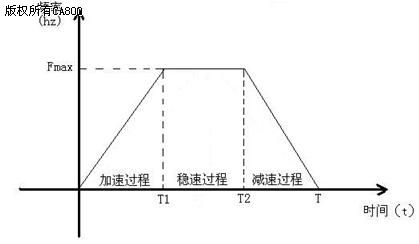 (2)速度曲線設(shè)計:為了滿足加減速時間,同時希望最高速度保持在一定范圍內(nèi),所以最終決定將速度運行曲線做適當(dāng)修改,除了加速過程和減速過程,還增加一個穩(wěn)速過程,速度圖形如圖5所示。